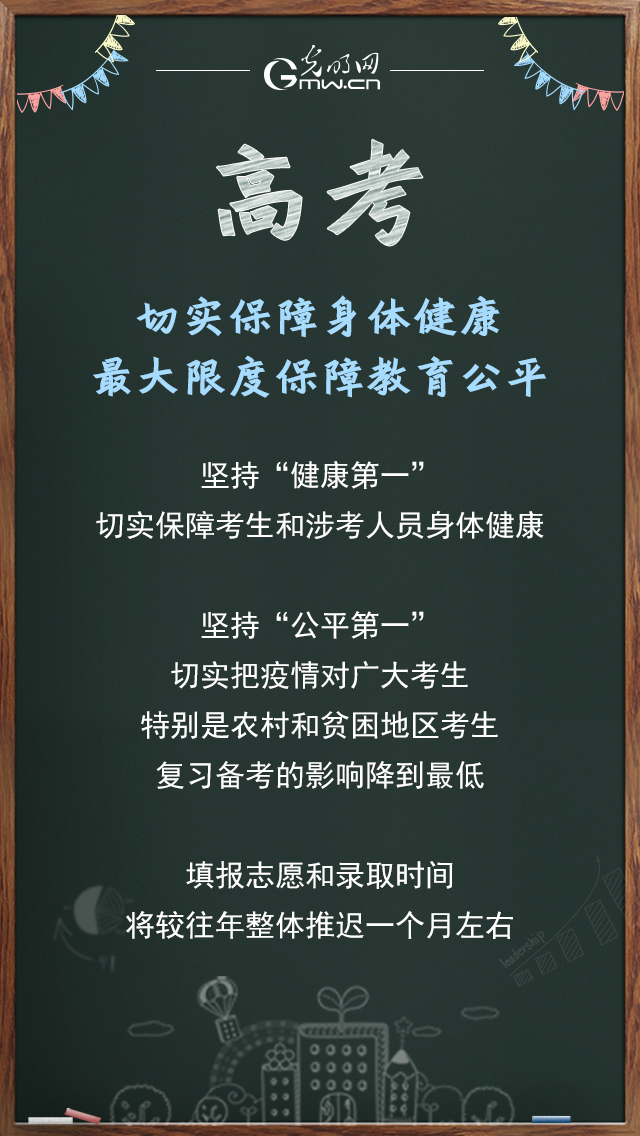 3月31日中午,教育部發布公告,明確2020年高考延期舉行,考試時間為7月7日至8日。