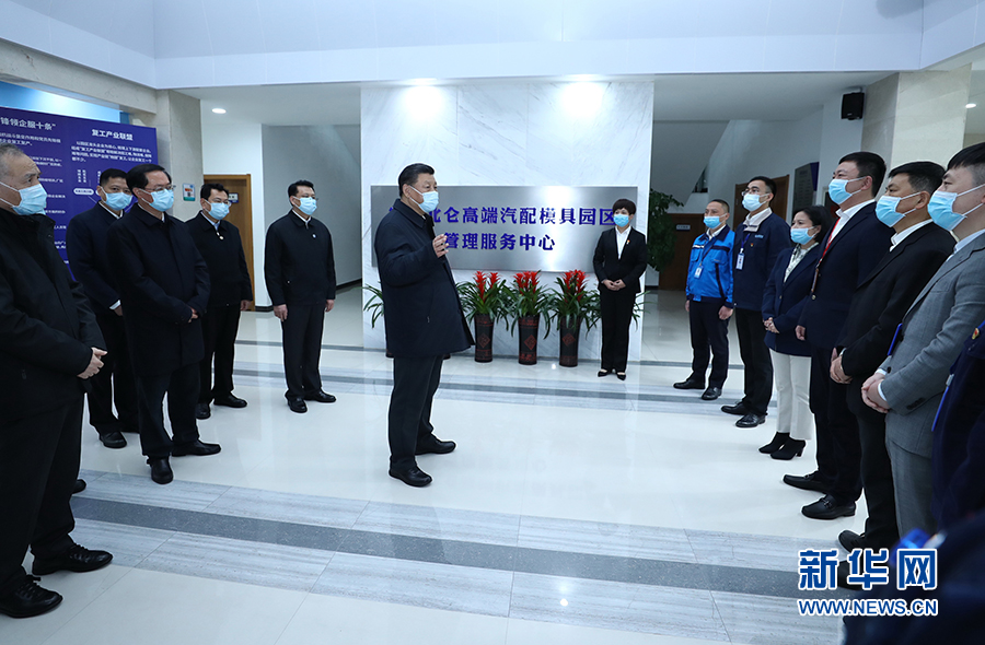 3月29日,中共中央總書記、國家主席、中央軍委主席習近平在浙江考察調研。這是習近平在寧波北侖大碶高端汽配模具園區了解企業復工復產情況。 新華社記者 申宏 攝