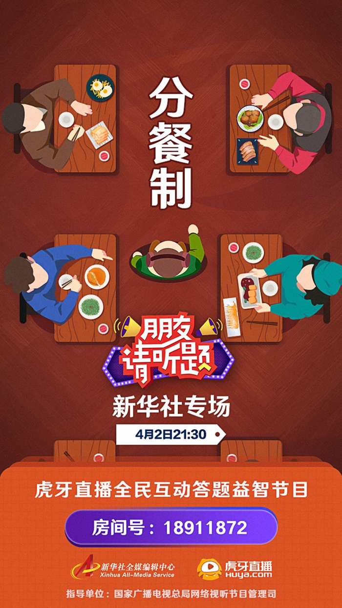 4月2日21:30,大家在最新版的虎牙直播內(nèi)搜索《朋友請(qǐng)聽題》,即可直接進(jìn)入直播間,找到答題入口參與活動(dòng),答對(duì)12題就可分享現(xiàn)金大獎(jiǎng)!