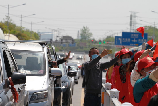 今天(4月15日)上午,北京協和醫院醫療隊撤離武漢。至此,來自全國各地的346支援鄂醫療隊撤離完畢。北京協和醫院醫療隊撤離時,在駐地中核國際酒店旁邊的居民樓,有武漢市民在陽臺不停晃動紅色被子為醫療隊送行。