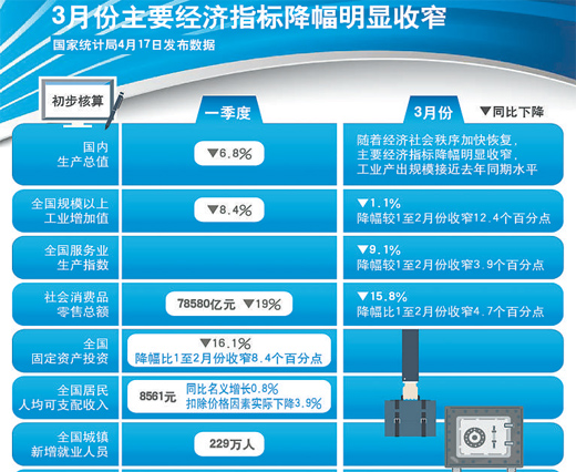 前3月國內(nèi)生產(chǎn)總值同比下降,3月份主要經(jīng)濟(jì)指標(biāo)呈現(xiàn)回升勢頭