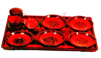 古代中國人分餐進食,一般都是席地而坐,面前擺著一張低矮的小食案,案上放著輕巧的食具,重而大的器具直接放在席子外的地上。后來說的“筵席”,正是這古老分餐制的一個寫照?!逗鬂h書·逸民傳》記隱士梁鴻受業于太學,還鄉娶妻孟光,夫妻二人后來轉徙吳郡(今蘇州),為人幫工。梁鴻每當打工回來,孟光為他準備好食物,并將食案舉至額前,捧到丈夫面前,以示敬重。孟光的舉案齊眉,成了夫妻相敬如賓的千古佳傳。又據《漢書·外戚傳》說:“許后朝皇太后,親奉案上食?!币驗槭嘲覆淮蟛恢兀话阒幌抟蝗耸褂茫詪D人也能輕而易舉。