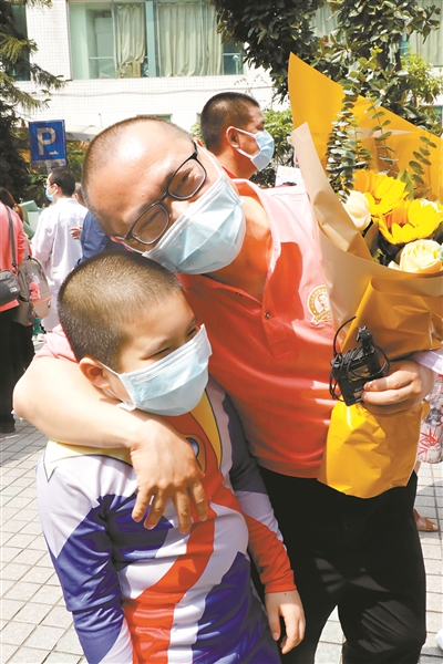 “兒子,爸爸打贏怪獸回來了!快來抱一個!”醫療隊員、“廣州實力中青年醫生”王川副主任醫師給9歲的兒子力力一個大大的擁抱。因為在出征儀式上拿出兒子的奧特曼卡表達戰“疫”決心,這位內分泌疾病專家在網絡上意外走紅,被網友稱為“奧特曼”爸爸。不過,這張奧特曼卡不小心遺失在武漢了。當天,力力特意穿了一件奧特曼衣服,帶著兩張全新的奧特曼卡,和媽媽一起來迎接爸爸回家?!拔也辉诩业倪@段時間,感覺孩子變得更懂事了?!蓖醮ㄕf道,“回家第一件事,我想給他們母子倆做一頓飯吃?!?/p>