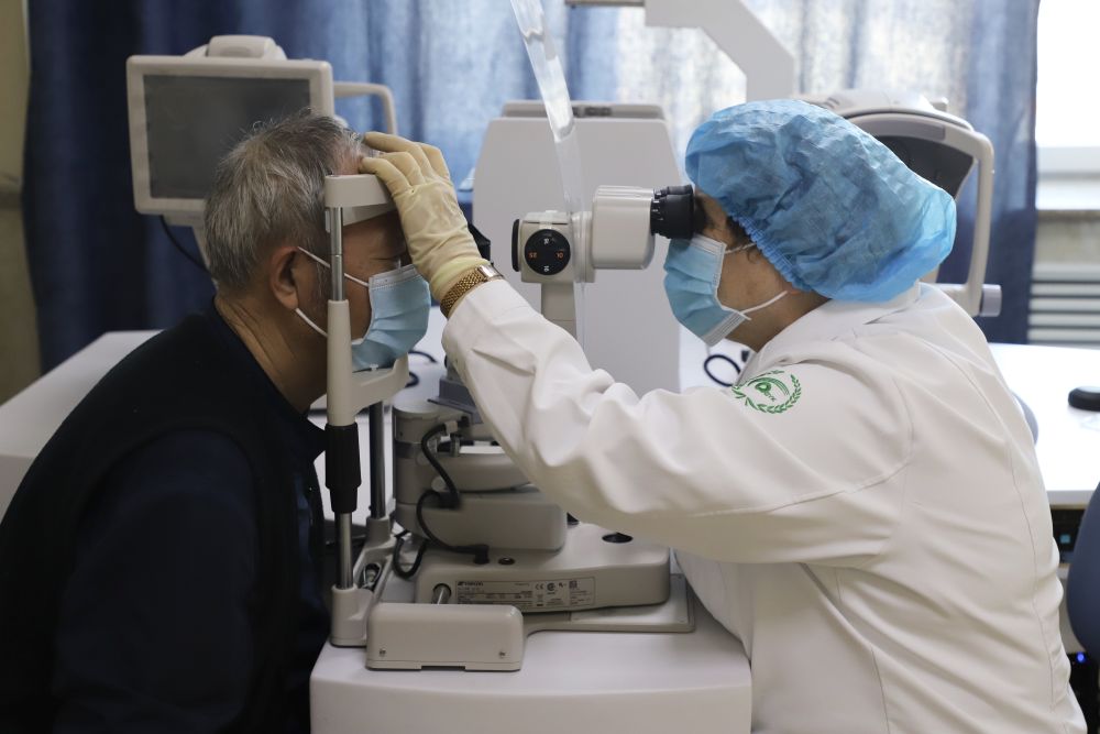 大慶眼科醫院,莉莉婭·波波娃醫生為患者做檢查。新華社發 徐凱鑫 攝