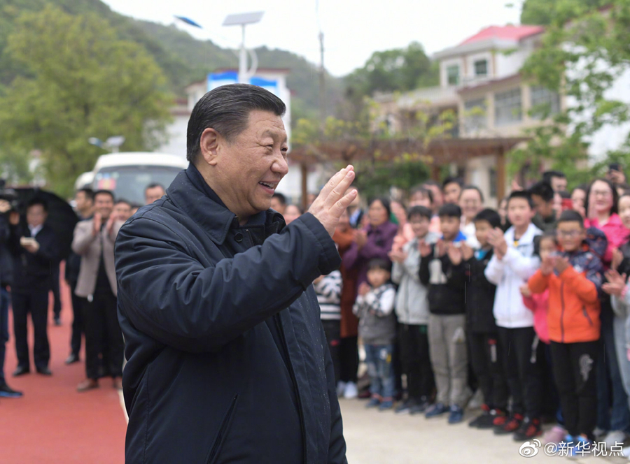 正在陜西考察的習近平總書記20日下午來到柞水縣小嶺鎮金米村。金米村地處秦嶺深處,近年來依靠發展木耳等產業擺脫了貧困。村培訓中心,幾位村民正在做網上直播賣貨的準備工作,總書記走到直播平臺前,同他們親切交談起來。他表示,電商作為新興業態,既可以推銷農副產品、幫助群眾脫貧致富,又可以推動鄉村振興,是大有可為的。(文字記者:張曉松 攝影記者:鞠鵬、謝環馳、燕雁、翟健嵐)