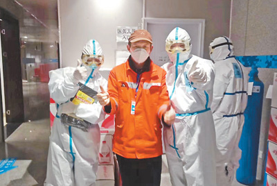 高上元(左二)和醫護人員合影。資料照片
