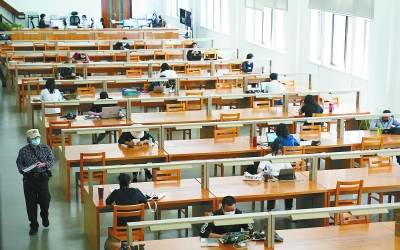 昨天,讀者在秩序井然的國(guó)家圖書館總館南區(qū)沉心閱讀。記者 方非攝