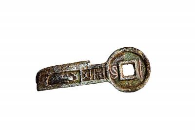 出土的新莽時期錯金“一刀平五千”錢幣 資料圖片