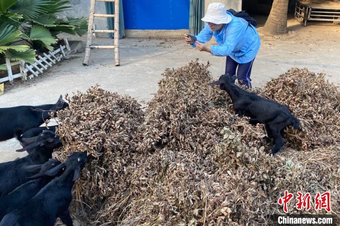 海南文昌龍樓紅海山羊養殖農民專業合作社內,社長符歡正悉心照料合作社養殖的130多只黑山羊。喂羊、清理羊舍、售賣農產品,是他每天的工作。