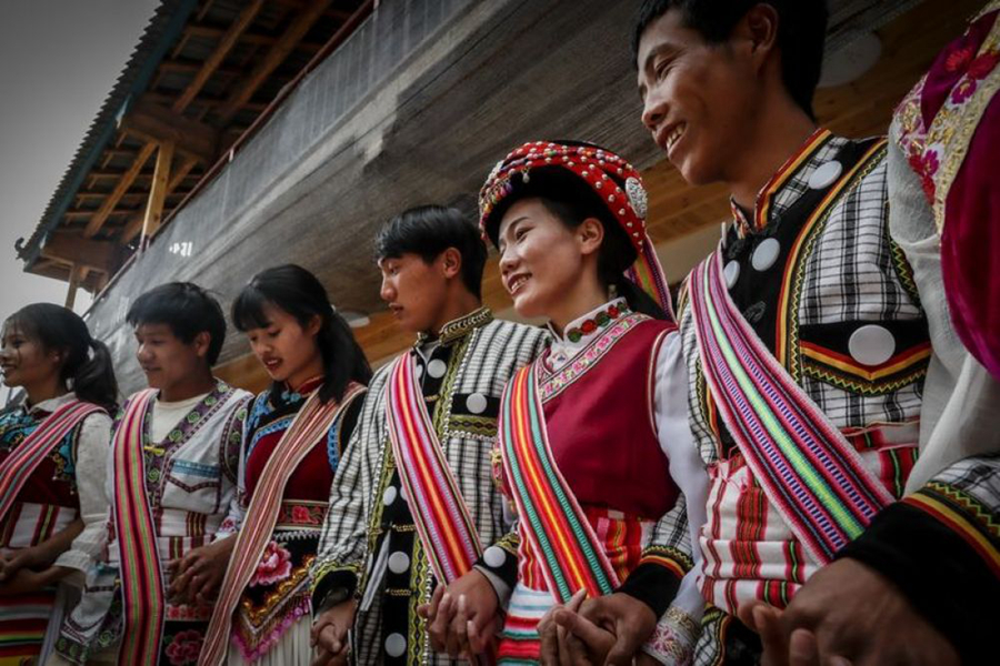 ↑調研間隙,李金蓮(右二)與村民跳起了傈僳族舞蹈(5月5日攝)。新華社記者 孫敏 攝