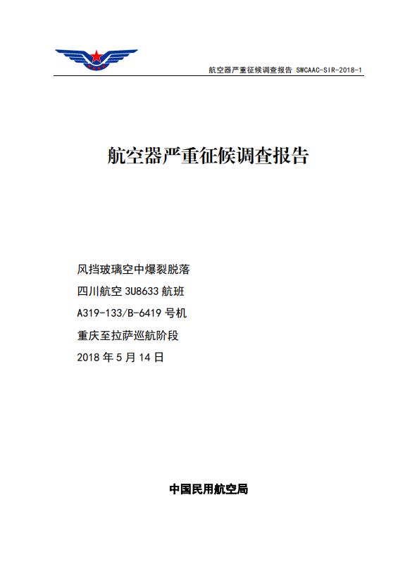 6月2日,中國民用航空安全信息系統發布2018年5月14日川航A319-100/B-6419號機執行3U8633重慶至拉薩航班風擋玻璃空中爆裂脫落事件的調查報告。