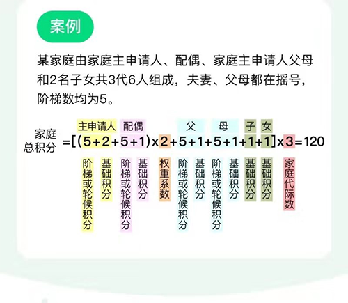 無論是幾代人家庭,家庭與個人都是在一個池子里搖號。家庭總積分和個人階梯數即為該家庭或個人的申請編碼出現在搖號池中的次數,申請編碼出現的次數越多,中簽率越高。