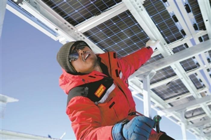 曾應根為泰山站新能源系統安裝光伏太陽能板。受訪者供圖