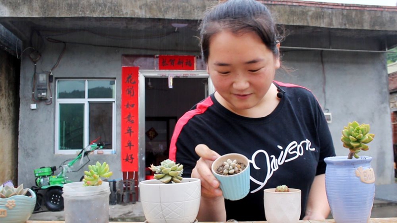 在尋烏縣丹溪鄉岑峰村,張荷花家讓記者眼前一亮——小院就在車來車往的縣道旁,本該積灰的地方卻沒啥塵土。房子雖是農村少見的平房,但屋內收拾得井井有條。低矮的院墻上,擺放著長勢喜人的多肉、蟹爪蓮、長壽花、玫瑰等植物,透露出主人的生活情趣。