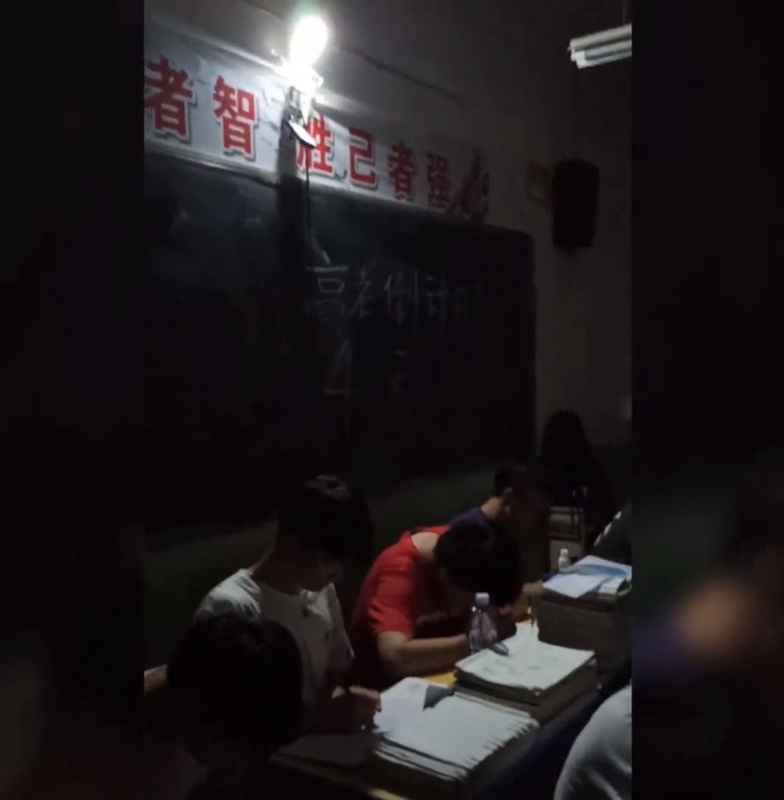 高三的學(xué)生們?yōu)樯贤碜粤?xí),將2盞臺(tái)燈掛到教室前后的黑板上,繼續(xù)學(xué)習(xí)。數(shù)學(xué)老師雷忠霖感動(dòng)流淚,記錄下了這一幕。