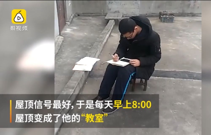 特殊時(shí)期,學(xué)校選擇了網(wǎng)上開(kāi)課。小通因家中沒(méi)有WiFi,又舍不得用流量,就向鄰居求助,蹭隔壁家的WIFI。屋頂信號(hào)最好,于是才有了“學(xué)霸上屋頂”的勵(lì)志一幕。