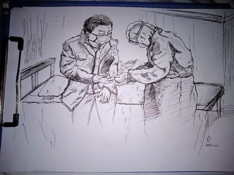 “護(hù)士們一忙就是6個(gè)小時(shí)以上,我希望用素描記錄這里的每一個(gè)溫暖瞬間。”作為一名美術(shù)藝考生,彭昕燁用自己最擅長(zhǎng)的方式——素描,將醫(yī)院內(nèi)那些溫暖的瞬間記錄下來(lái)。