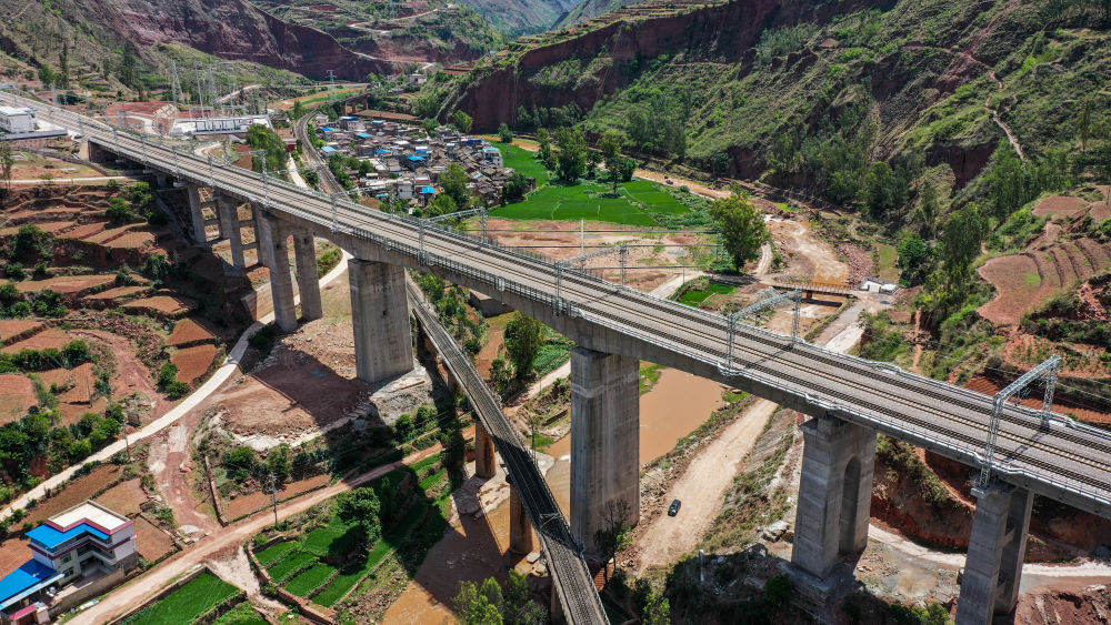 這是采用“轉(zhuǎn)體施工法”建設(shè)的大樹村龍川江三線大橋(上)一景,該橋單體轉(zhuǎn)體重量7350噸,總重量14700噸(無人機照片,6月23日攝)。新華社記者 胡超 攝