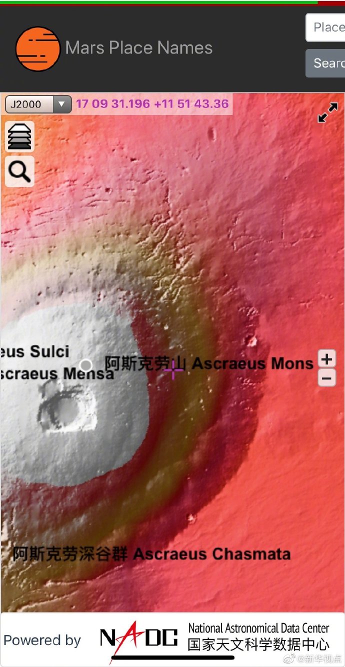 據悉,國家天文科學數據中心為這批火星地形地貌特征專門制作了可視化頁面,不僅能直觀地瀏覽火星表面地形地貌所對應的中文推薦譯名,還支持中英文地名搜索。社會各界在試用過程中發現問題或有其他意見、建議,也可通過天文學名詞網站進行反饋。
