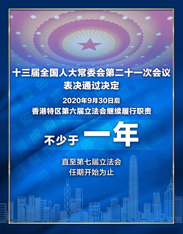 全國人大常委會表決通過關(guān)于香港特別行政區(qū)第六屆立法會繼續(xù)履行職責(zé)的決定