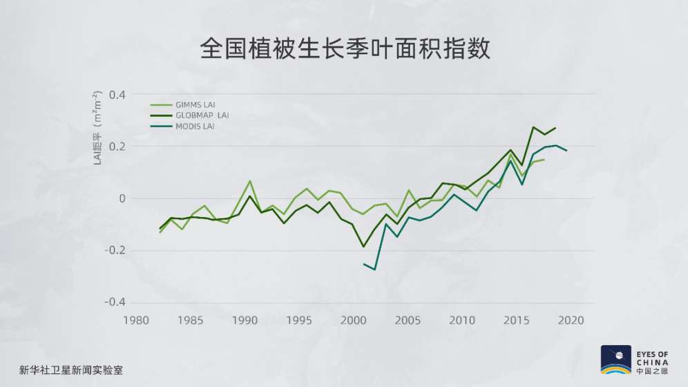 北京大學城市與環(huán)境學院教授樸世龍的研究顯示:相較于上世紀八九十年代,中國“變綠”速度加快,而全球變綠趨勢減緩,這和中國植樹造林等生態(tài)工程密切相關。