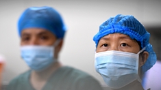 8月17日,甘肅省第二人民醫(yī)院介入醫(yī)學(xué)科主任醫(yī)師余新林在護(hù)士的幫助下佩戴鉛帽,準(zhǔn)備進(jìn)行手術(shù)。新華社記者 朱藝琳 攝