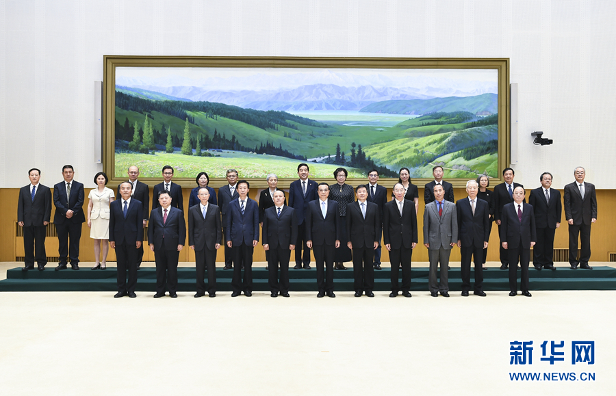 8月19日,中共中央政治局常委、國務院總理李克強在北京向新聘任的國務院參事和中央文史研究館館員頒發聘書。這是李克強與新聘任的國務院參事和中央文史研究館館員等合影。新華社記者 謝環馳 攝