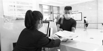 8月22日,一位企業負責人在天津市濱海新區政務服務辦全流程自動化制證中心領取排污許可證。新華社記者 王井懷攝