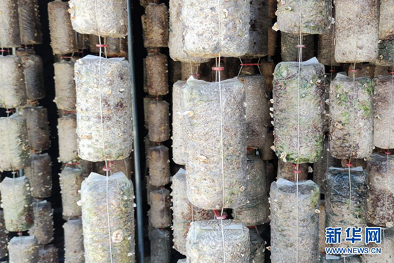 圖為楊莊村食用菌產業扶貧車間內的玉木耳菌袋。新華網記者李志強 攝