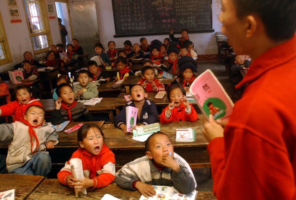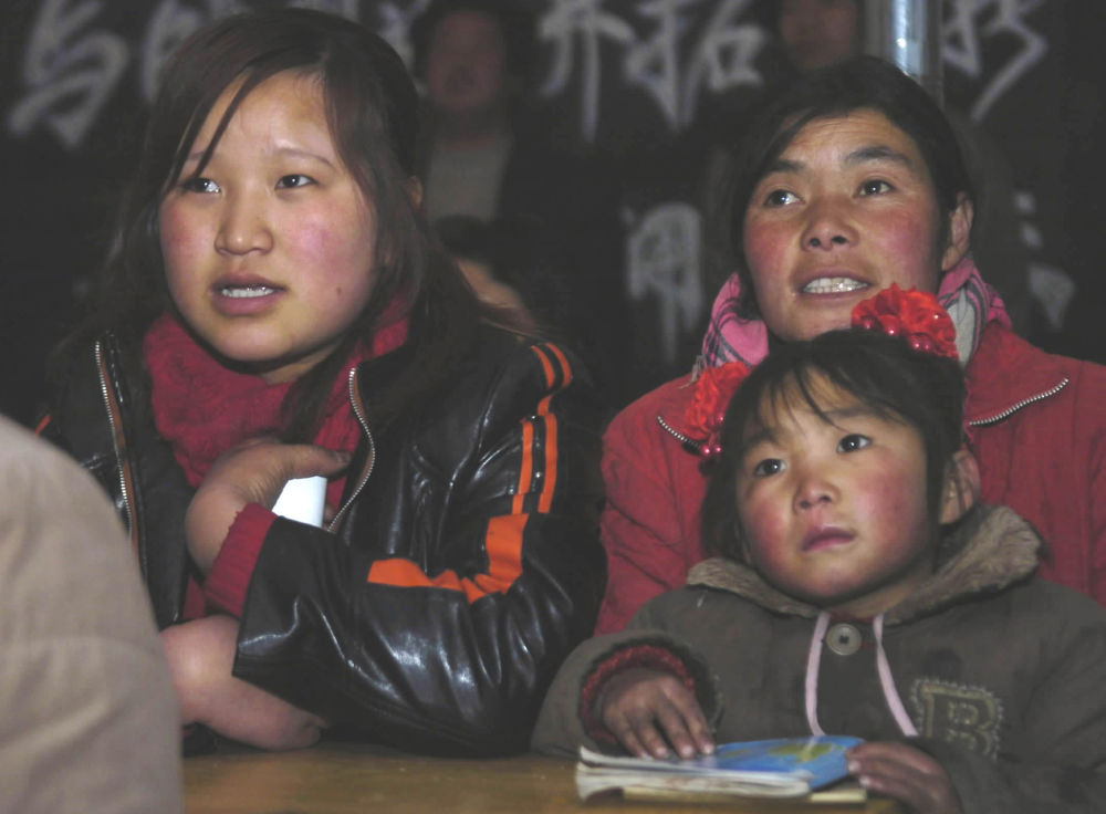 ↑ 2006年1月13日,“掃盲夜?!睂W員在甘肅漳縣三岔鎮中心小學上課。