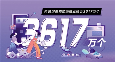 像張俊杰、潘仕學一樣在抖音上實現“靈活”就業的人還有很多。隨著越來越多的人全職或兼職以拍視頻為職業,抖音目前已形成連接億萬用戶和創作者、商家的互利共生就業生態。據《報告》測算,過去一年,抖音整體帶動的直接和間接就業機會達3617萬個。