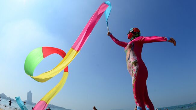 9月11日,福建農林大學林學院教授張國防(右)和同事在“福州林”測量樹木生長高度。 新華社記者 鄧倩倩 攝