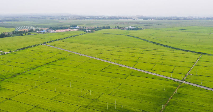 這是吉林市昌邑區大荒地村周邊的高標準水稻田(8月13日攝,無人機照片)。新華社記者 許暢 攝