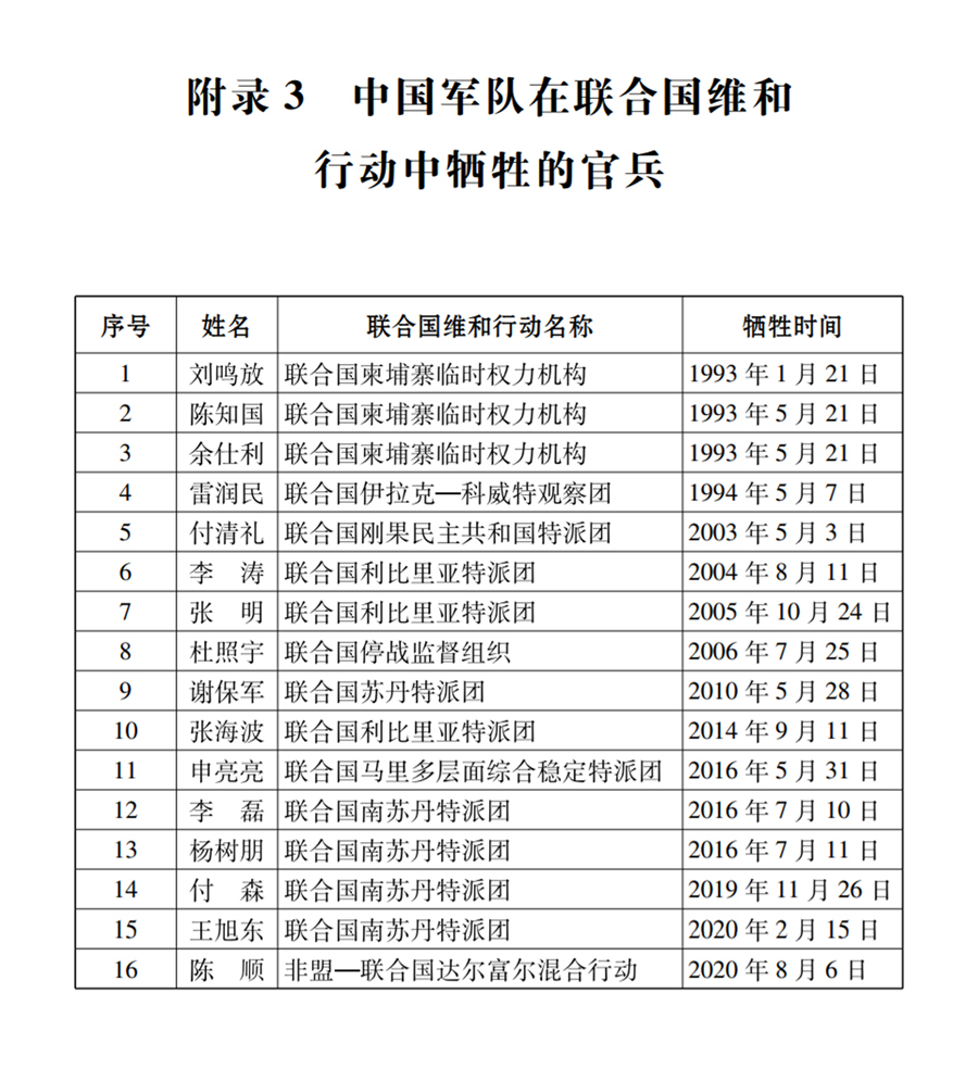 附錄3中國軍隊在聯合國維和行動中犧牲的官兵