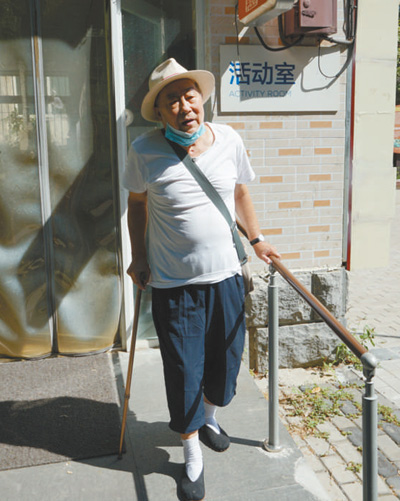 北京市海淀區北下關街道南里二社區經過適老化改造后,老人生活更加方便。圖為社區養老服務中心門口,腿腳不便的老人依靠扶手出門。記者 申少鐵攝