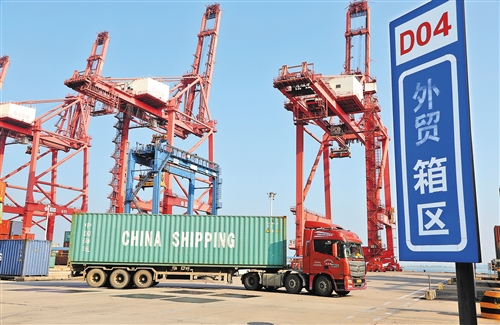 近日,運輸車輛在江蘇連云港集裝箱碼頭轉運集裝箱準備裝船出口國外。 海關總署發(fā)布的數(shù)據(jù)顯示,今年前8個月,我國貨物貿易進出口總值20.05萬億元,同比下降0.6%,降幅持續(xù)收窄,接近“轉正”。