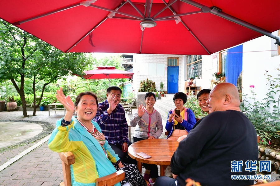 在河南省洛陽(yáng)市欒川縣叫河鎮(zhèn),游客在民宿的小院內(nèi)休憩(8月22日攝)。 新華社記者 馮大鵬 攝