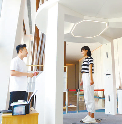 顧客在滄州市明珠國際服裝生態新城進行3D掃描量體。本報記者 史自強攝