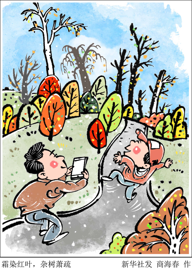 羅澍偉說,從“寒露”至“霜降”,北方霜染紅葉,南方蟬噤荷殘,秋色斑斕,美不勝收;廣大農村則進入秋熟作物收割、越冬作物播種的大忙季節,石榴、山楂、柿子等果子成熟,掛滿枝頭,累累碩果惹人醉。
