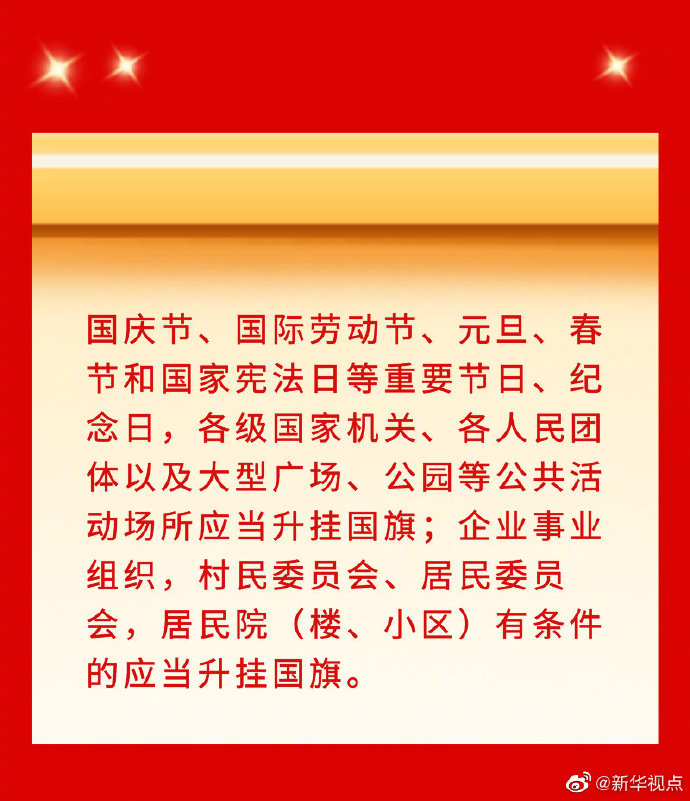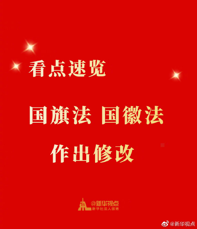 17日閉幕的十三屆全國(guó)人大常委會(huì)第二十二次會(huì)議對(duì)國(guó)旗法、國(guó)徽法進(jìn)行了修改。新修改的這兩部法律將于2021年1月1日起施行。修改后的法律進(jìn)一步明確了升掛國(guó)旗和懸掛國(guó)徽的場(chǎng)合,完善了國(guó)旗、國(guó)徽尺度,對(duì)損害國(guó)旗尊嚴(yán)的行為作出禁止性規(guī)定,可謂亮點(diǎn)頻頻。