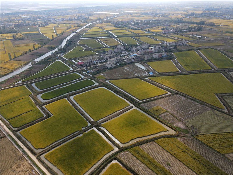 這是10月8日拍攝的安徽省潁上縣八里河鎮的稻田(無人機照片)。新華社記者 周牧 攝