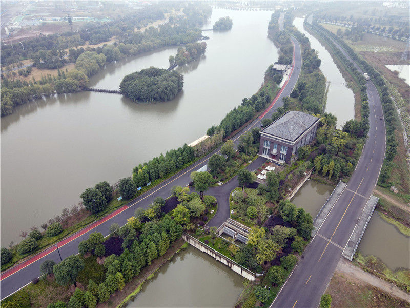 這是10月16日拍攝的安徽省潁上縣沿淮水利生態景區——五里湖濕地公園(無人機照片)。新華社記者 劉軍喜 攝