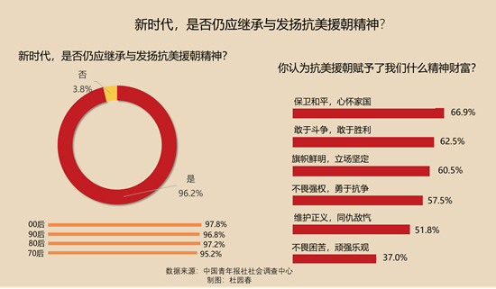 96.2%的受訪者確認,在新的時代背景下,我們仍應繼承與發揚抗美援朝精神。