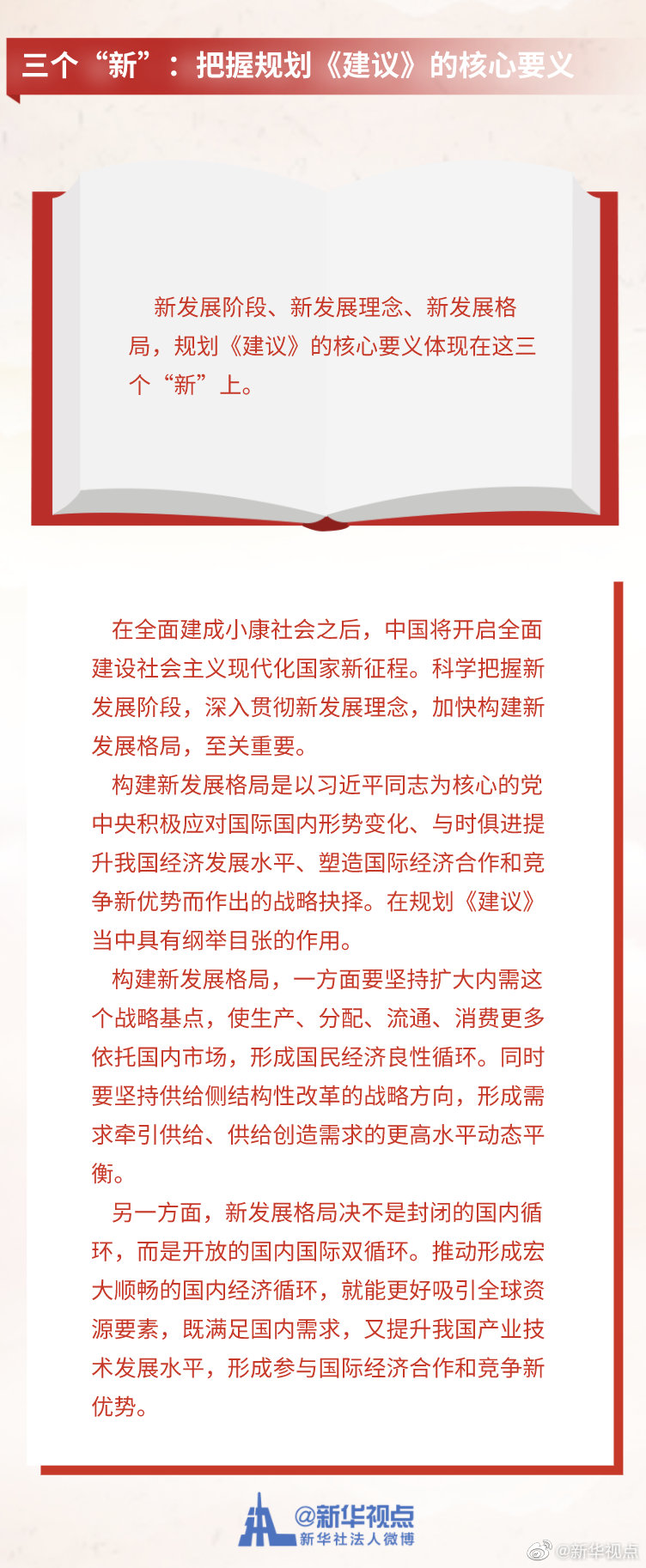 《中共中央關(guān)于制定國(guó)民經(jīng)濟(jì)和社會(huì)發(fā)展第十四個(gè)五年規(guī)劃和二〇三五年遠(yuǎn)景目標(biāo)的建議》3日公布。這份長(zhǎng)約2萬(wàn)字的文件,為未來(lái)5年及15年的中國(guó)發(fā)展勾勒藍(lán)圖。記者梳理出規(guī)劃《建議》中的“一二三四五”,為觀察中國(guó)發(fā)展走向提供一個(gè)獨(dú)特視角。