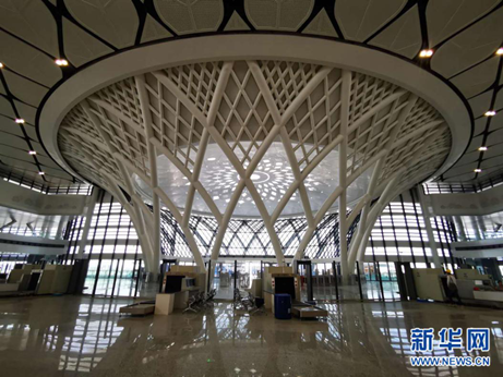 江門車站站房中心區域以“樹”狀造型(新華網 唐斕 攝)