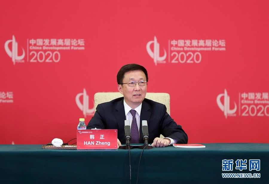 11月11日晚,中國發展高層論壇2020年年會在北京開幕。中共中央政治局常委、國務院副總理韓正出席開幕式并致辭。新華社記者 姚大偉 攝