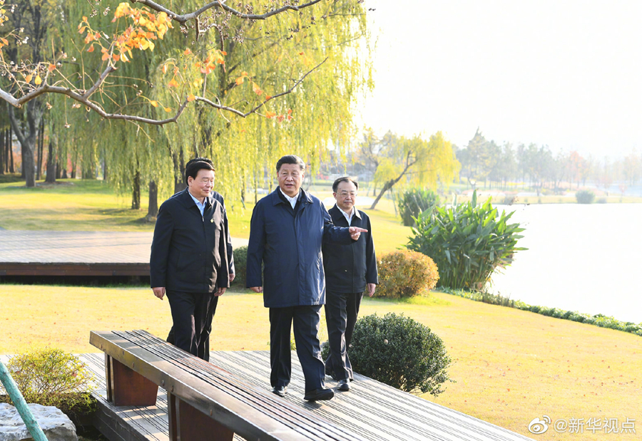 習近平總書記13日在揚州考察,走進運河三灣生態(tài)文化公園。習近平指出,目前的長三角一體化發(fā)展從頂層規(guī)劃到實際推動都取得了明顯的成果,還要繼續(xù)抓下去。生態(tài)文明建設在推動長三角一體化發(fā)展中占有重要地位,直接關系人民群眾生活幸福,關系青少年健康成長,是廣大人民群眾的共識和呼聲。(文字記者:張曉松、朱基釵 攝影:鞠鵬、謝環(huán)馳、燕雁)