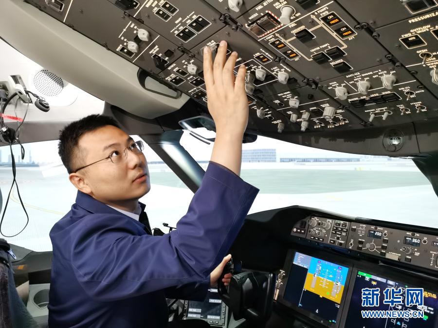 在蓉飛行模擬機運行團隊負責人姜毓琦在工作中(10月16日攝)。新華社發(中國商飛四川分公司供圖)
