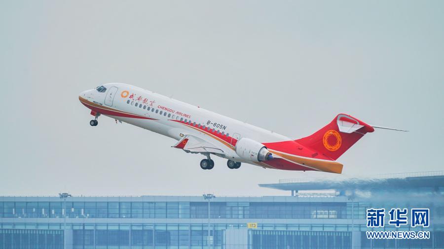 一架ARJ21飛機在飛行(資料照片)。新華社發(中國商飛四川分公司供圖)