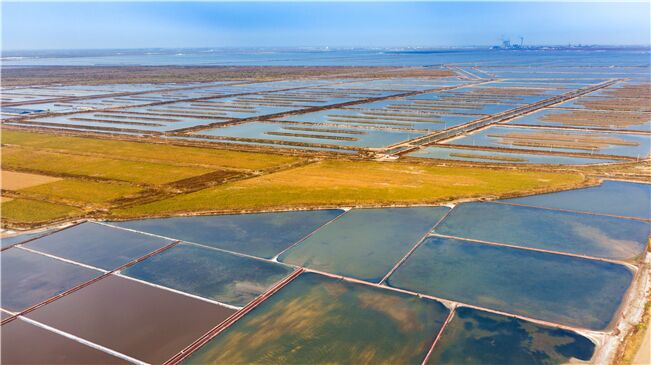 高空俯瞰 濱州七彩鹽田宛如調色板